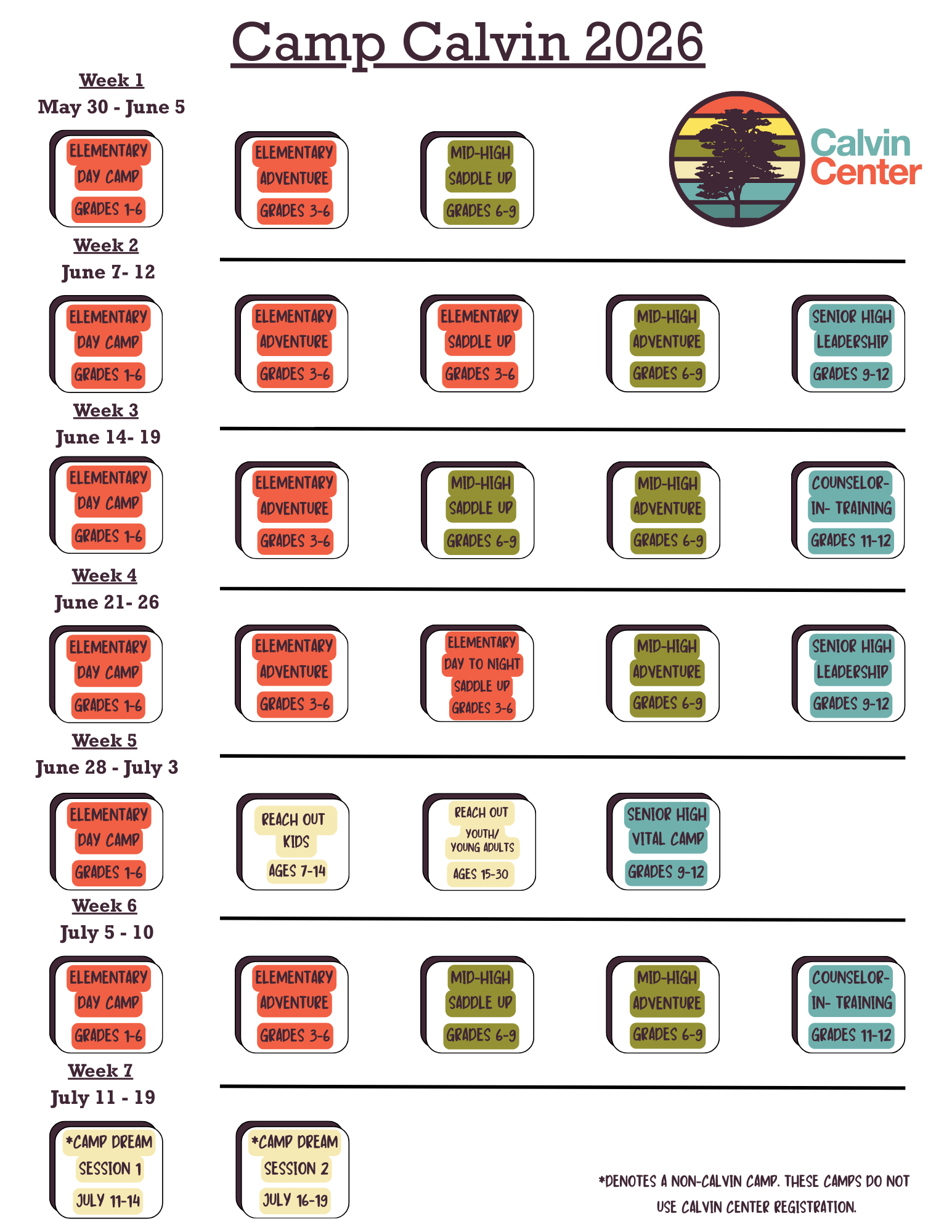 Camp Calvin 2026 Schedule